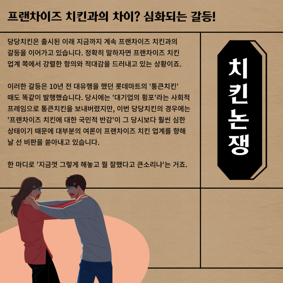 최근 프랜차이즈 치킨과 당당치킨의 대립이