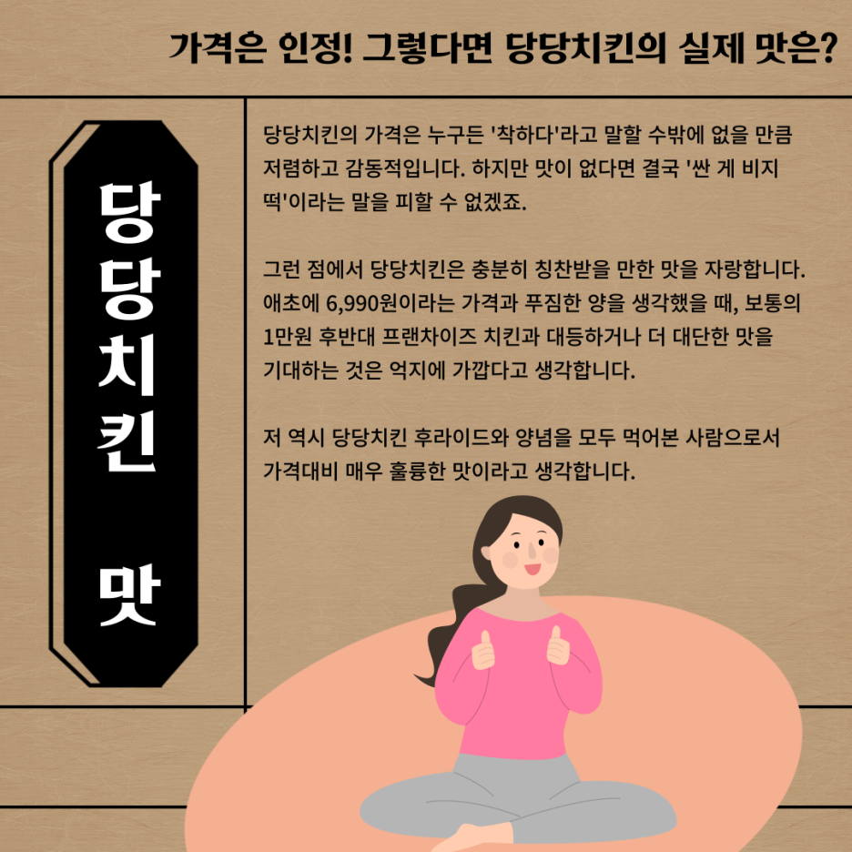 다만, 당당치킨의 맛이나 가격과는 별개로