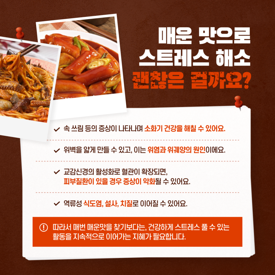 따라서, 매번 매운맛을 찾기보다는 건강하게 스트레스를