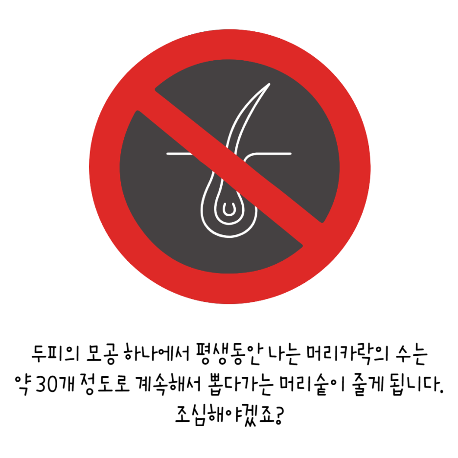 머리카락의 수는 평균 30개 정도라고 합니다.