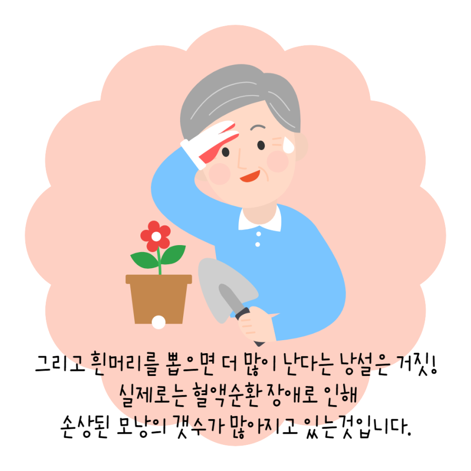 고연령대에서의 흰머리 발생은 보통 탈모도