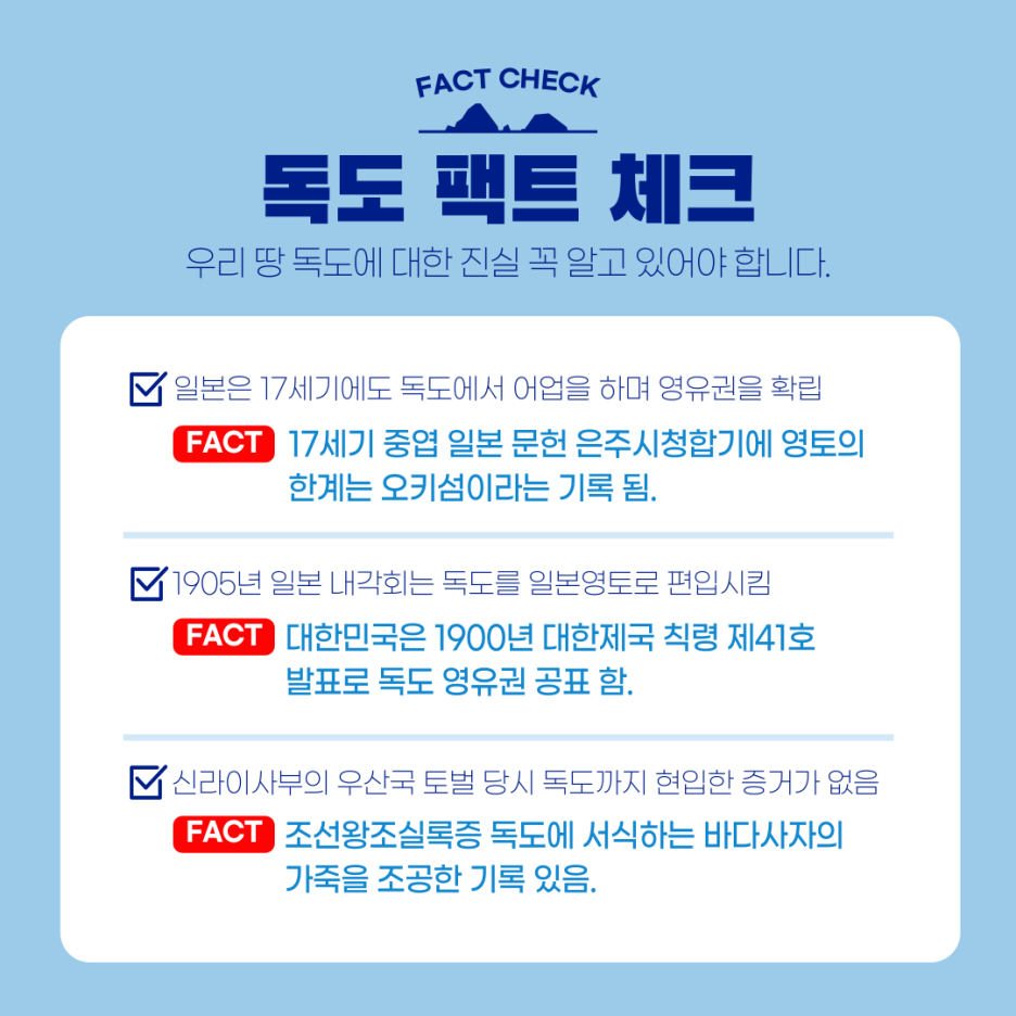 마지막으로 독도 팩트 체크를 해보겠습니다.