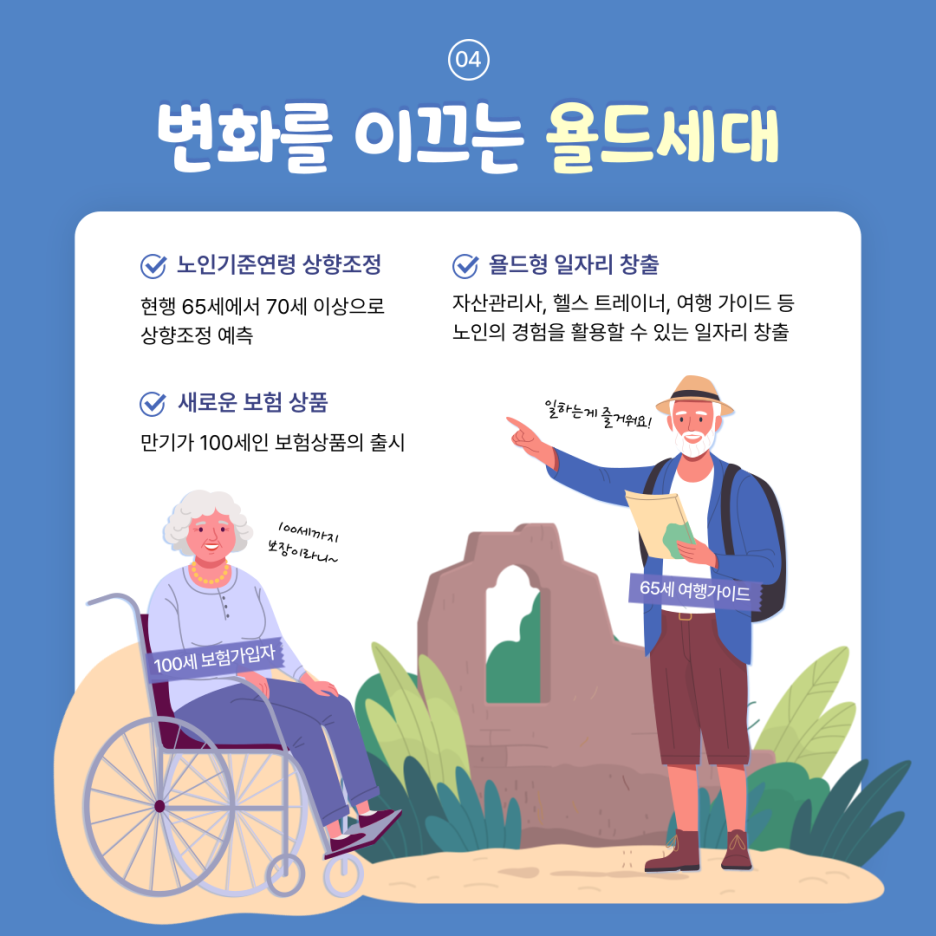 100세 시대 욜드족은 변화를 이끌기도 하죠.