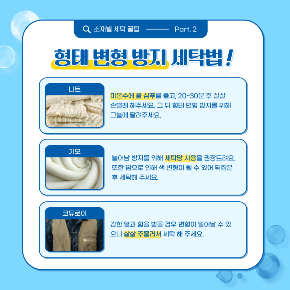 이상으로 각 소재별 세탁 꿀팁을