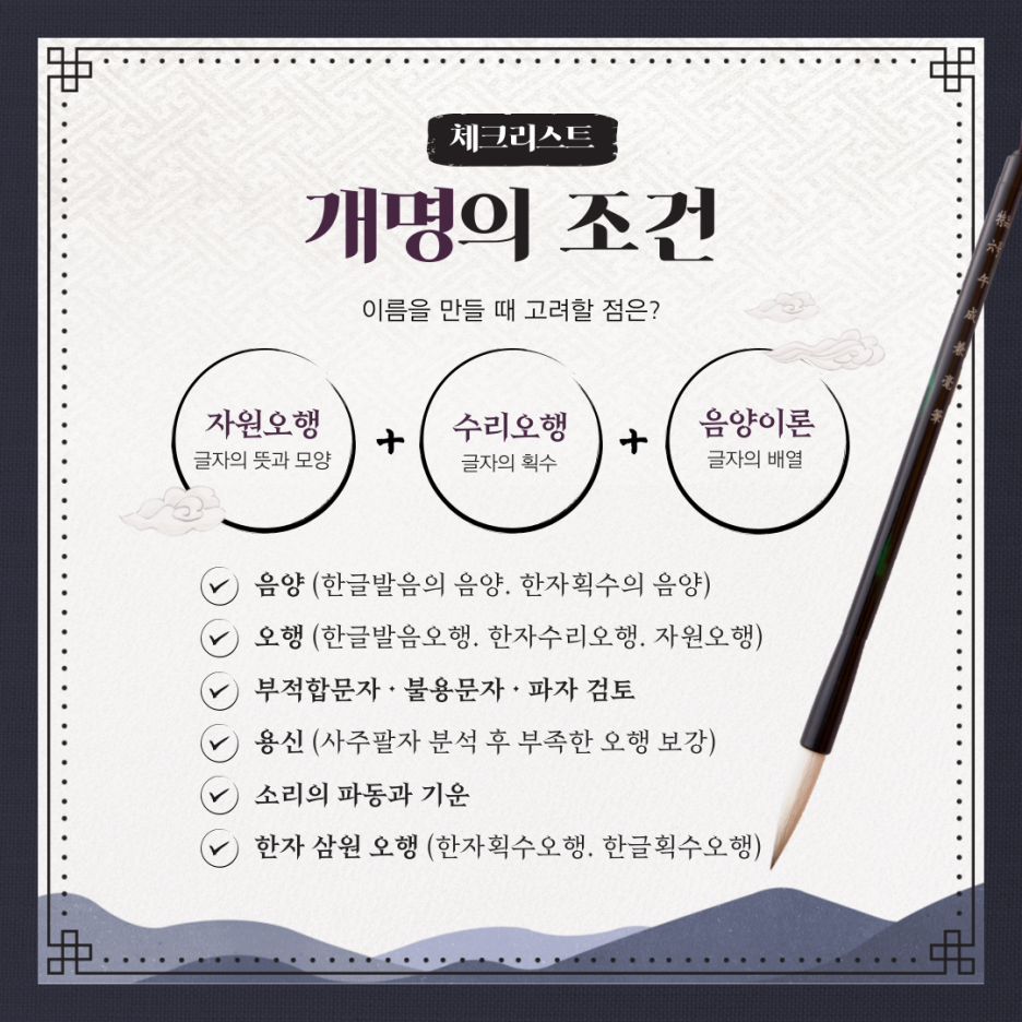 개명의 조건에는 자원오행, 수리오행, 음양이론