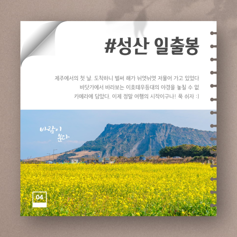 성산일출봉이 가장 느낌이 좋았던 것 같아요~!