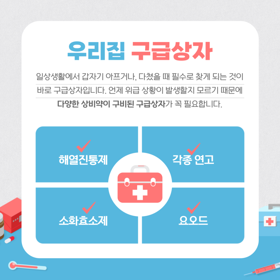 많은 상비약이 구비돼 있는 것이 중요합니다.