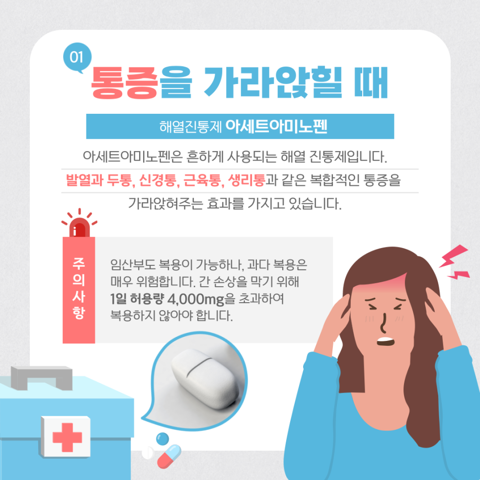 아세트아미노펜 성분이 들어간 약품이 효과적입니다.