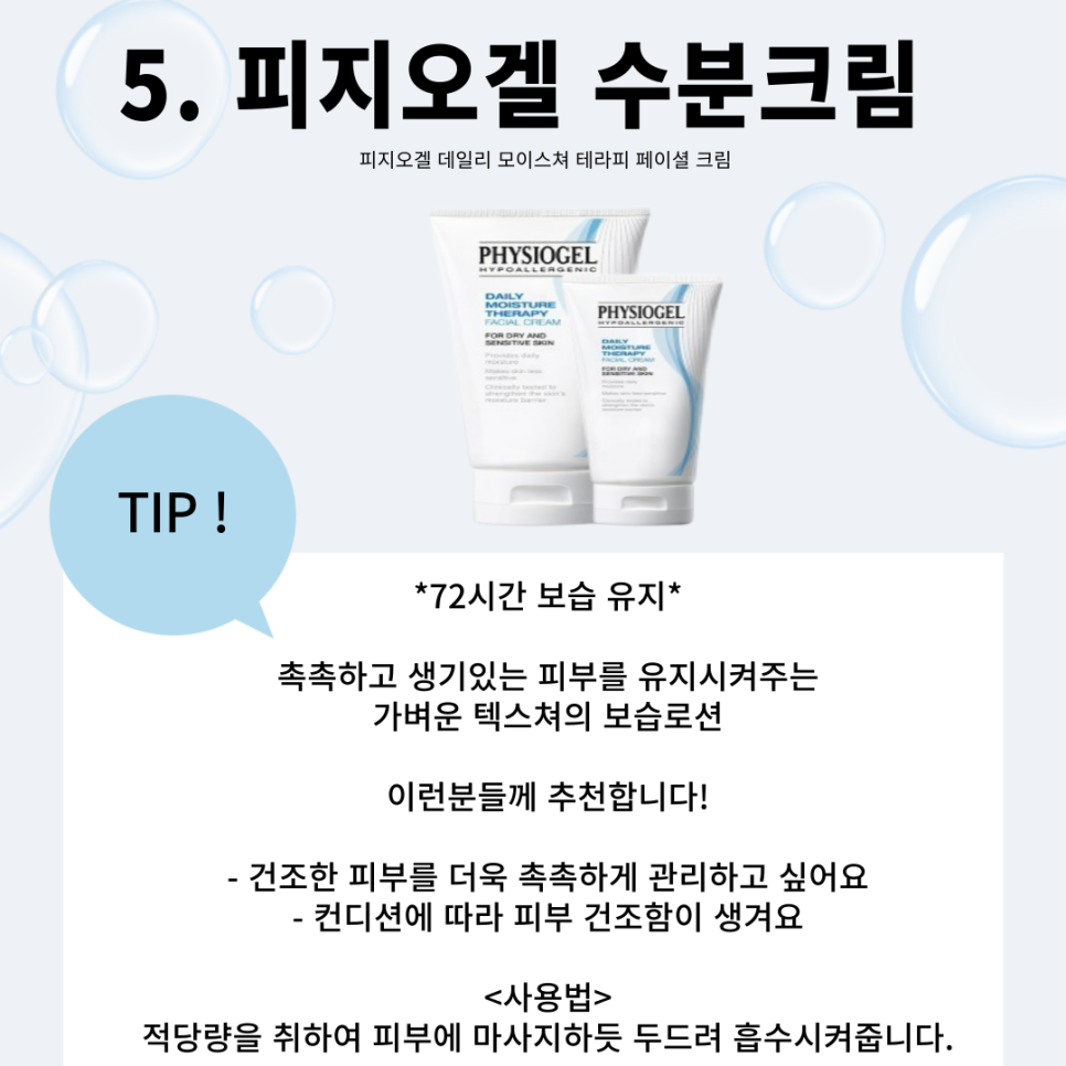 마지막으로 지금 사용 중 인 피지오겔 수분크림인데요