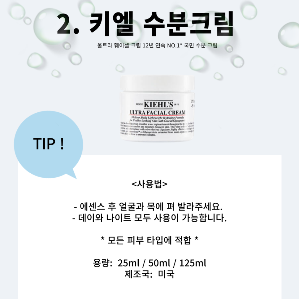 두번째 제품은 키엘 수분크림이에용 !