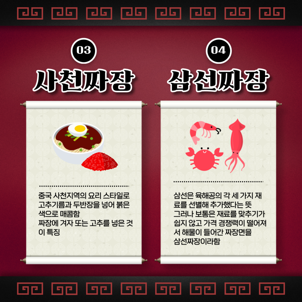 매콤하게 드실분은 사천짜장,육해공의 풍미를 느끼고 싶으신분은
