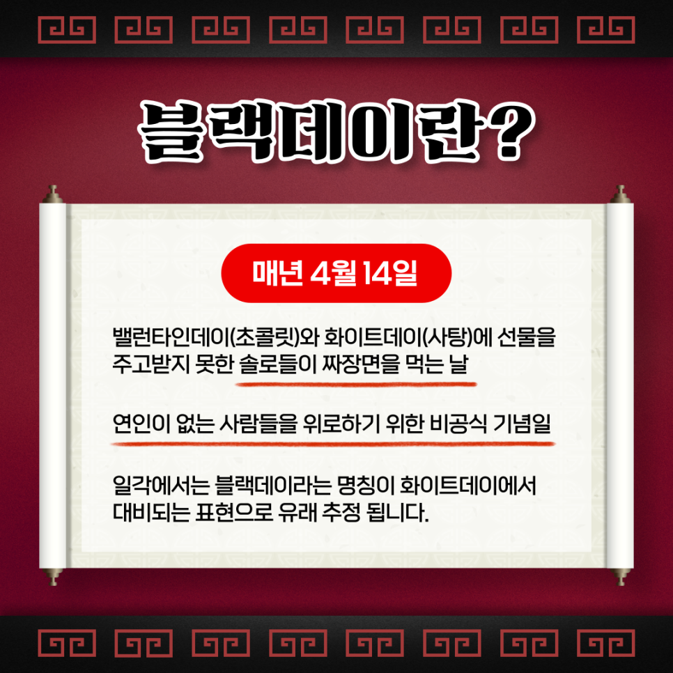 화이트데이와 반전되는 네임으로 블랙데이라고 칭한거죠~
