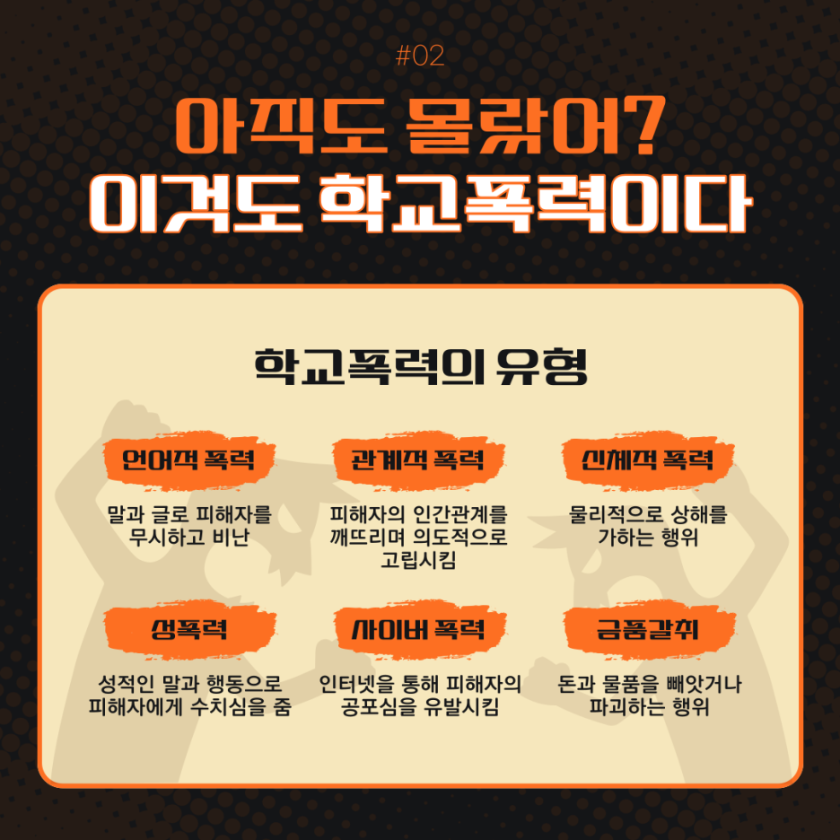 이것들 외에도 무수히 많은 형태의 학교폭력이