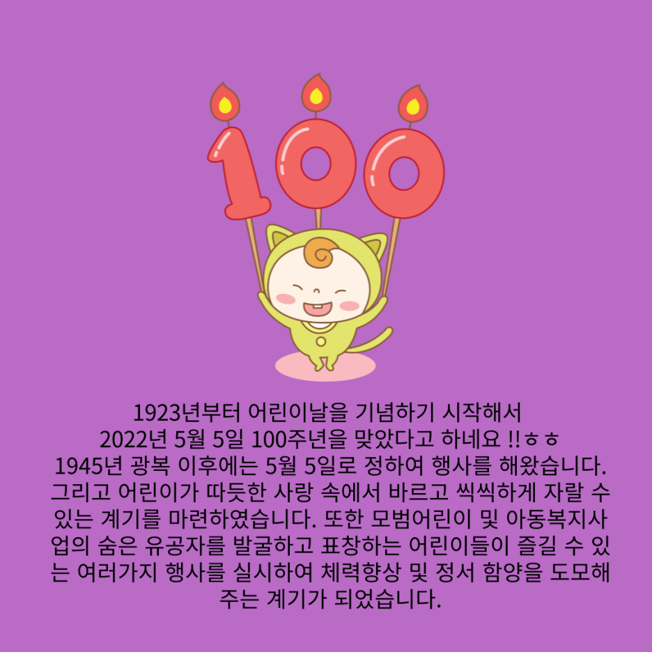 벌써 어린이날이 100주년을 맞았다고 합니당 ㅎㅎ