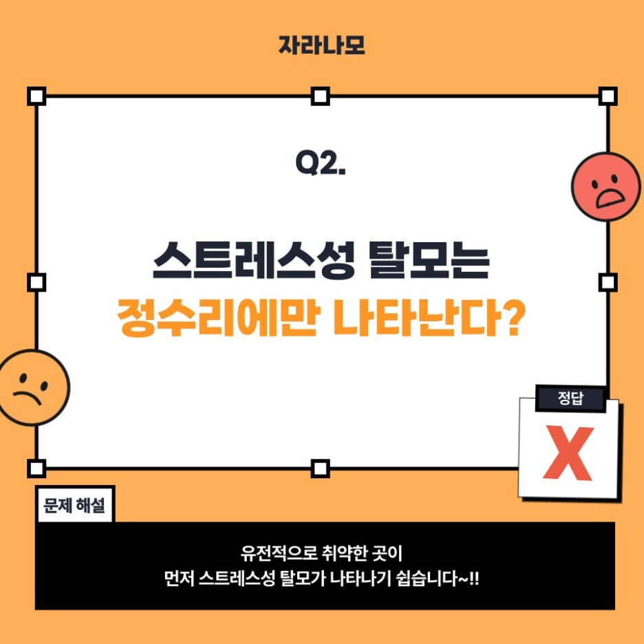 Q2. 스트레스성 탈모는 정수리에만 나타난다?