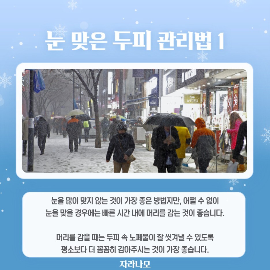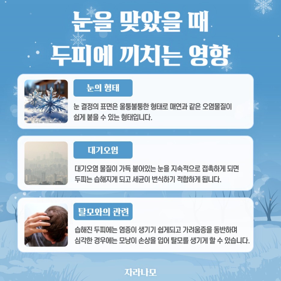 오늘은 눈을 맞았을 때 두피에 끼치는 영향에 대해