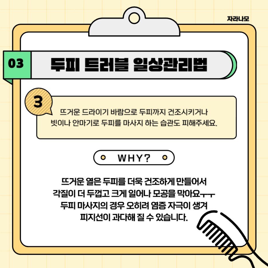 빗이나 두피 안마기로 두피 마사지를 하는 것도 피해주세요!