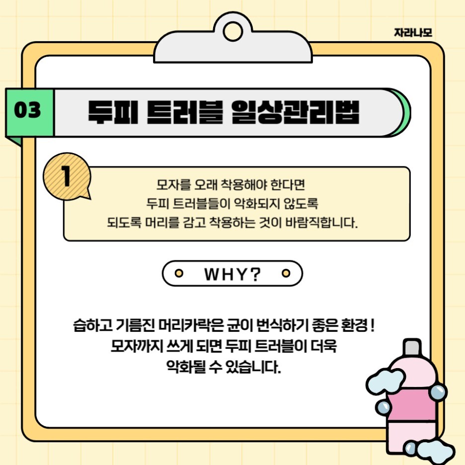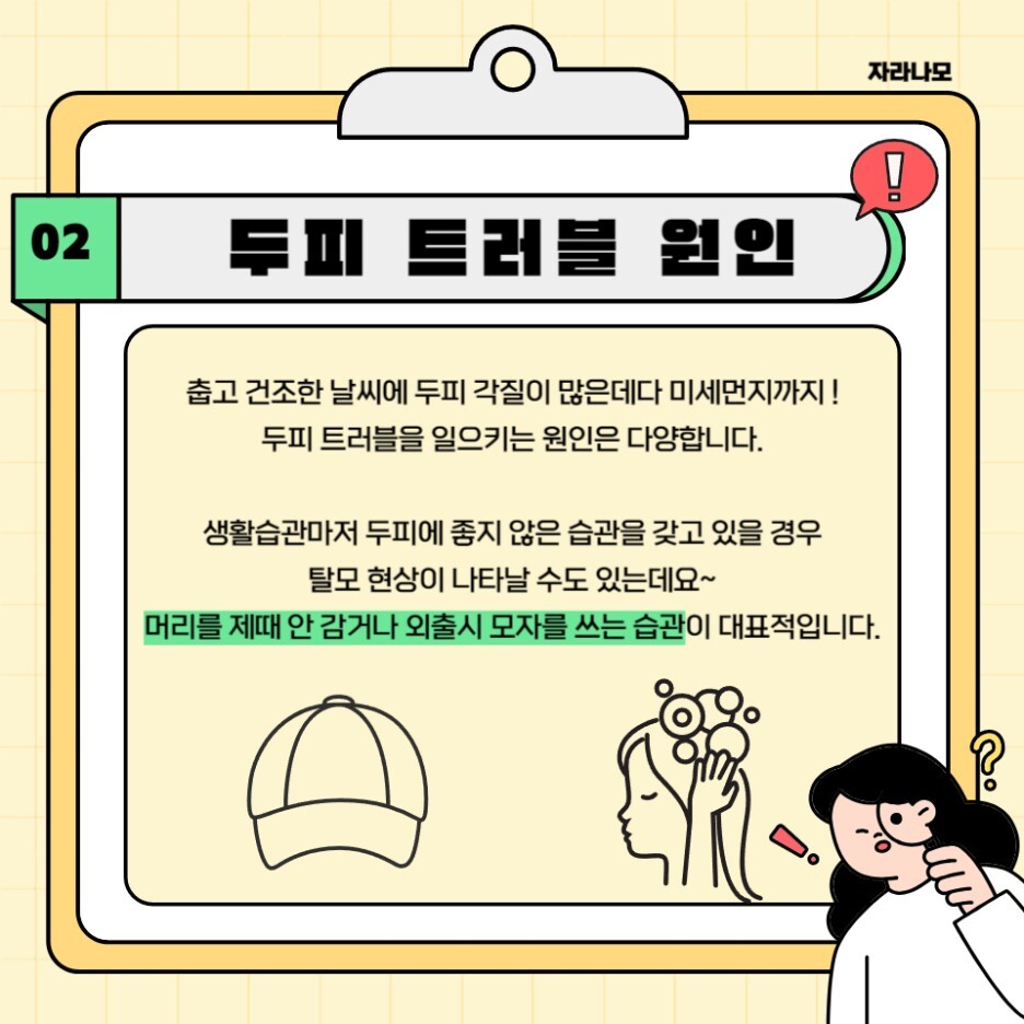 모자까지 쓰게 되면 두피 트러블이 더욱 악화됩니다!