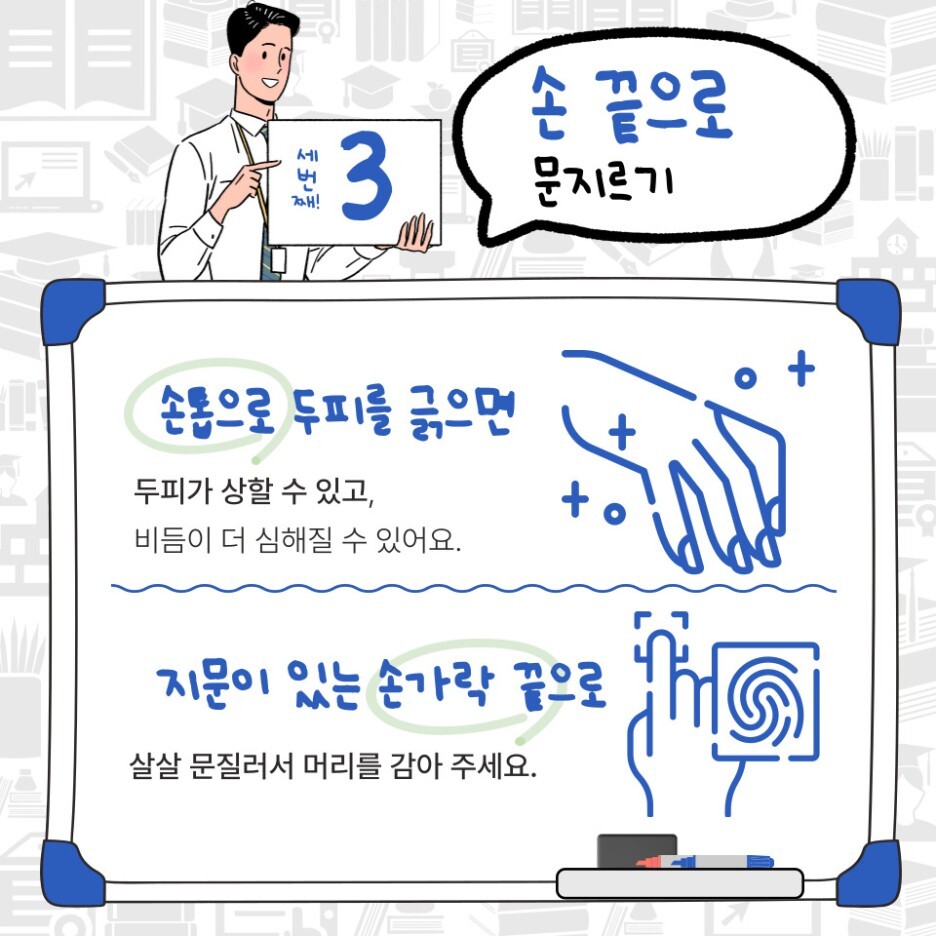 가장 중요한 세 번째! 손끝으로 두피 문지르기~