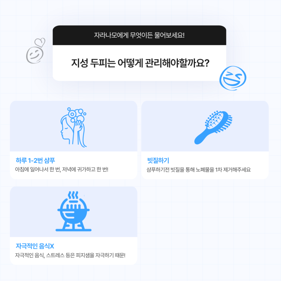 지성 두피는 샴푸를 일 최소 1회 이상 꼼꼼히 해주어야 합니다