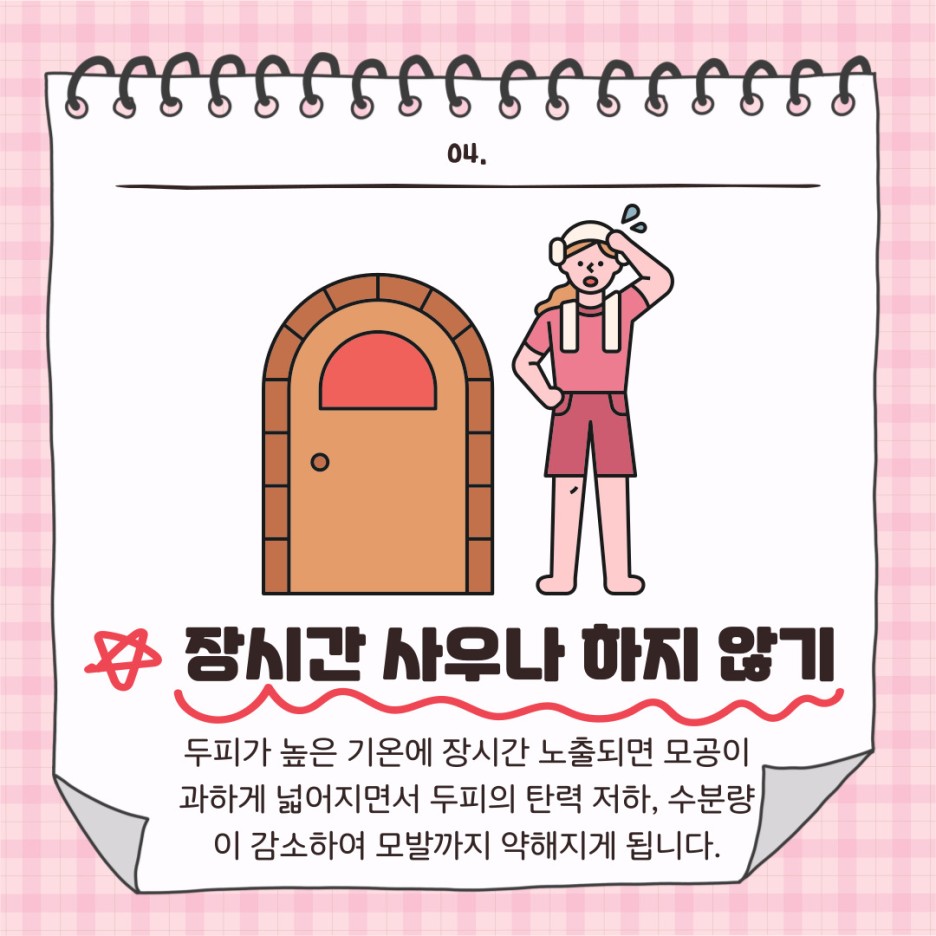 두피가 높은 기온에 장시간 노출되면 모공이 과하게 넓어지면서