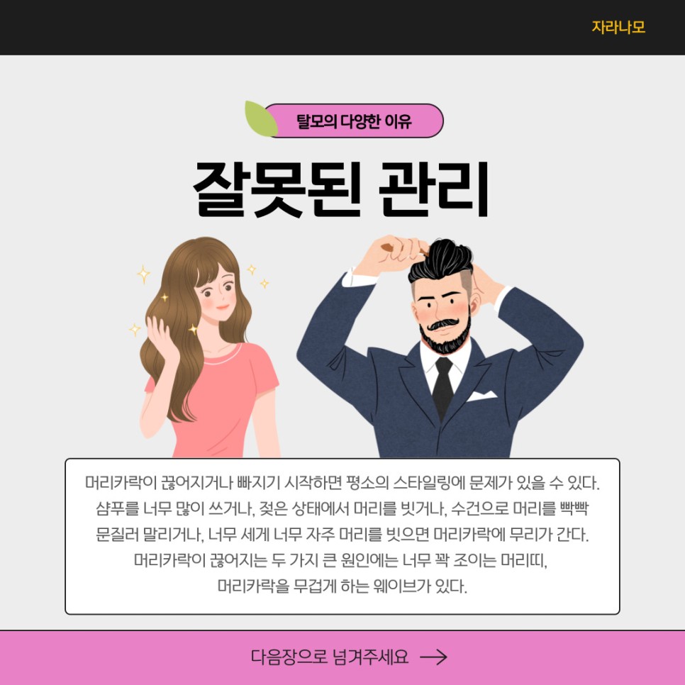 오늘은 자라나모에서 탈모의 다양한 이유를 알아보려고 해요~~