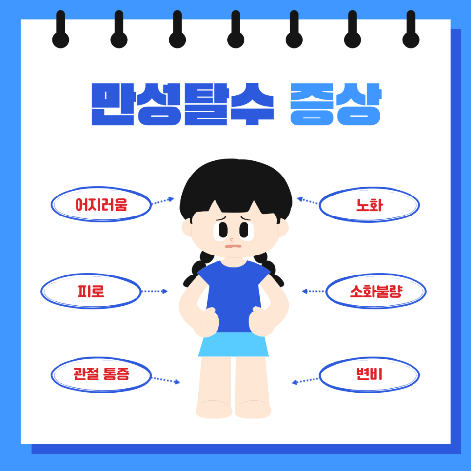 어지러움, 피로, 관절 통증, 노화, 소화불량 등이 있어요. 🥴