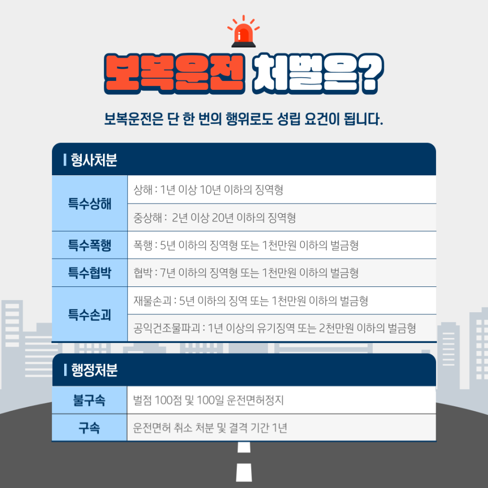 그런데! 보복운전은 법적으로도 아주 엄격하게 처벌받아요 🚔