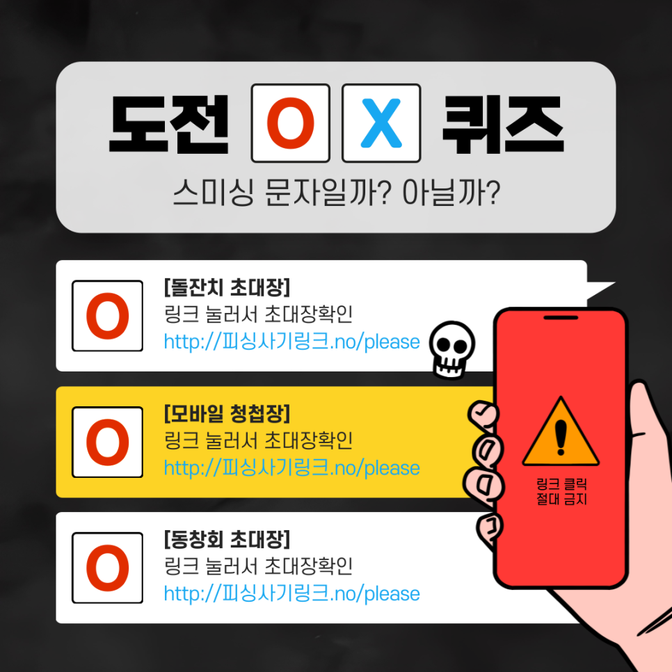 스미싱은 문자 메시지를 통해 악성 링크를 클릭하게 유도하는데,