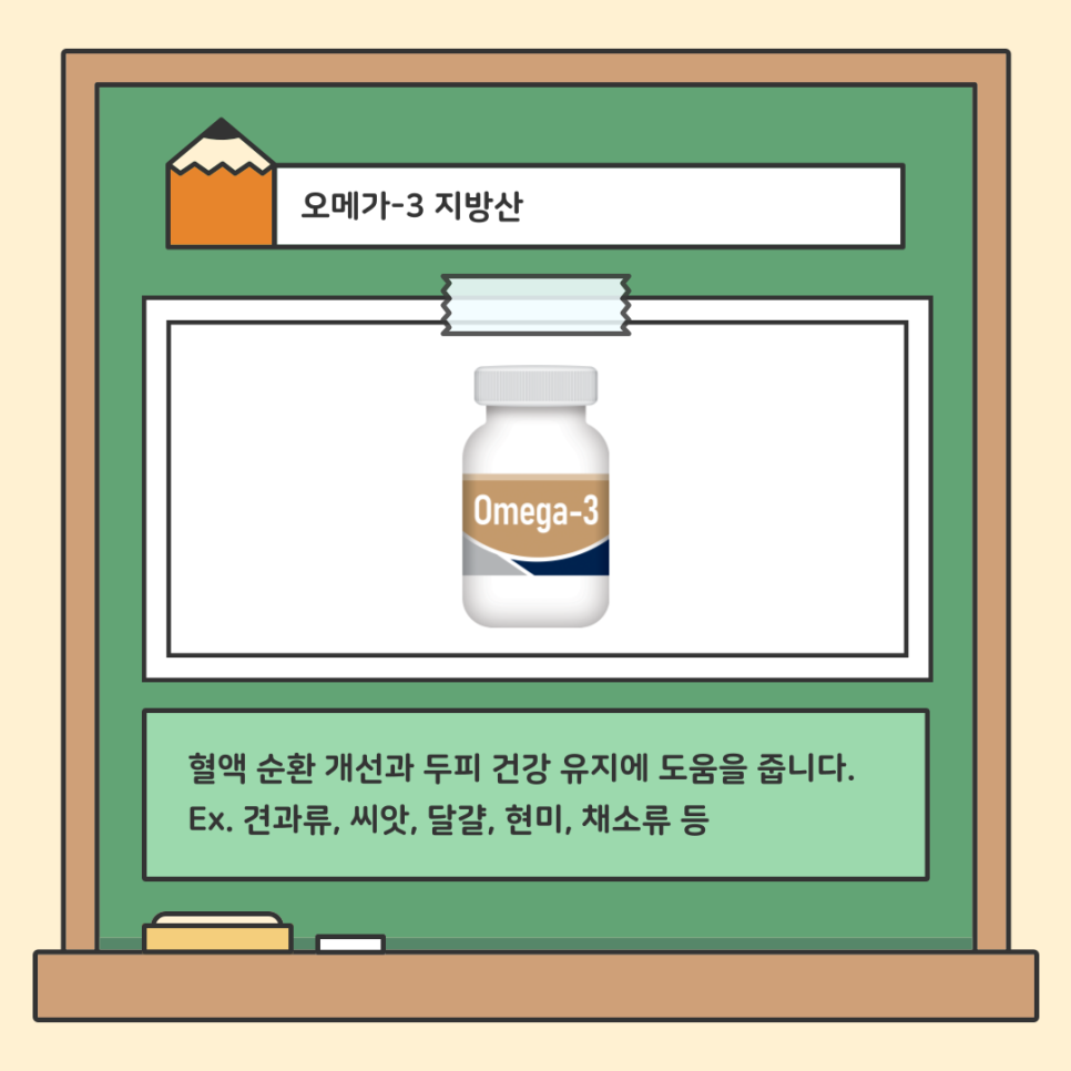 오메가-3 지방산: 혈액순환을 개선해서 두피 건강에 도움을 줍니다.
