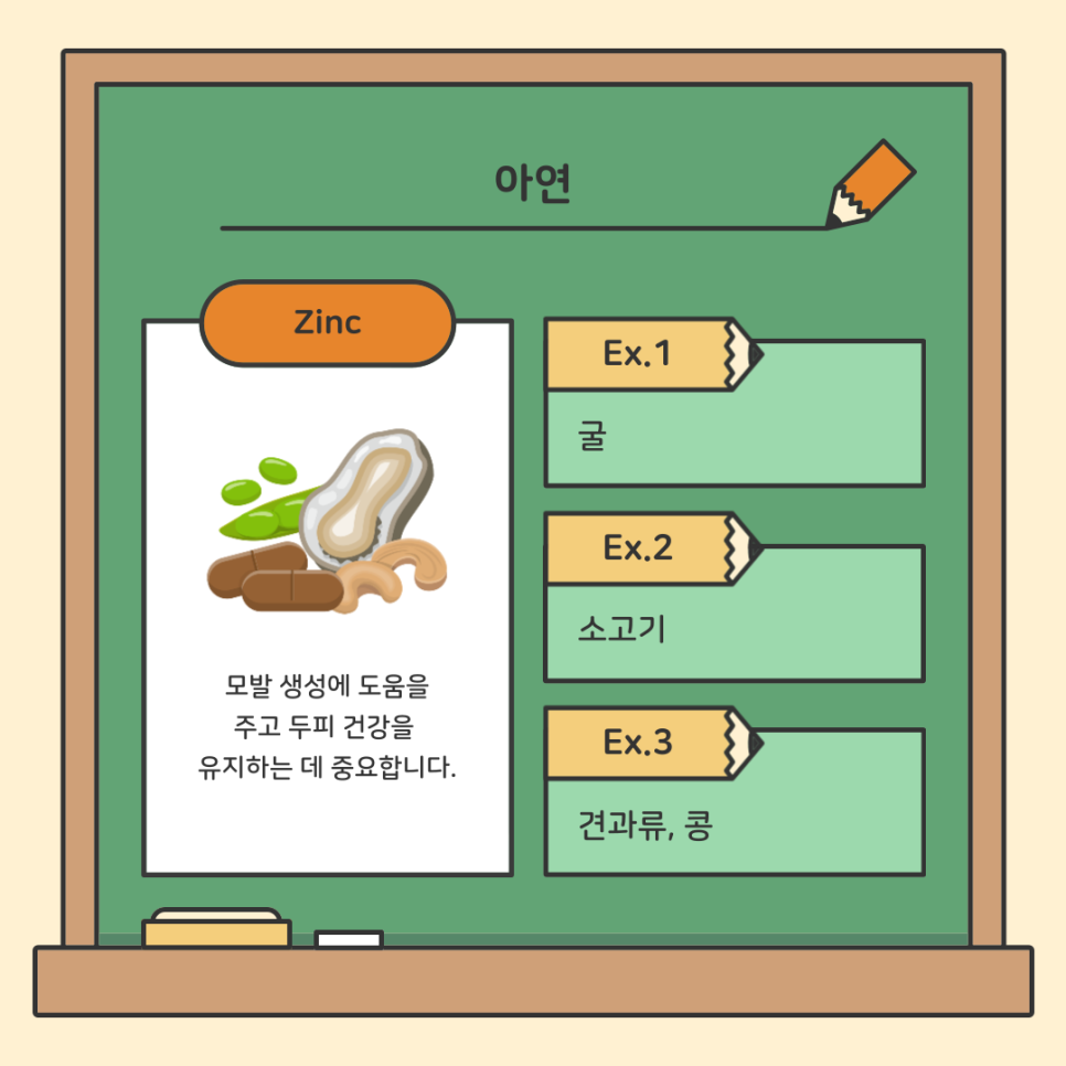 아연: 모발 생성뿐만 아니라 두피 건강까지 챙기는 중요한 성분!