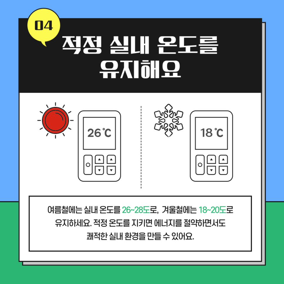 적정 온도를 유지하면 에너지도 절약하고 쾌적한 환경도 유지할 수 있답니다!