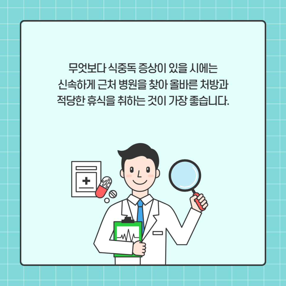 바로 병원을 찾아 적절한 처방을 받고 푹 쉬어야 해요. 🍲