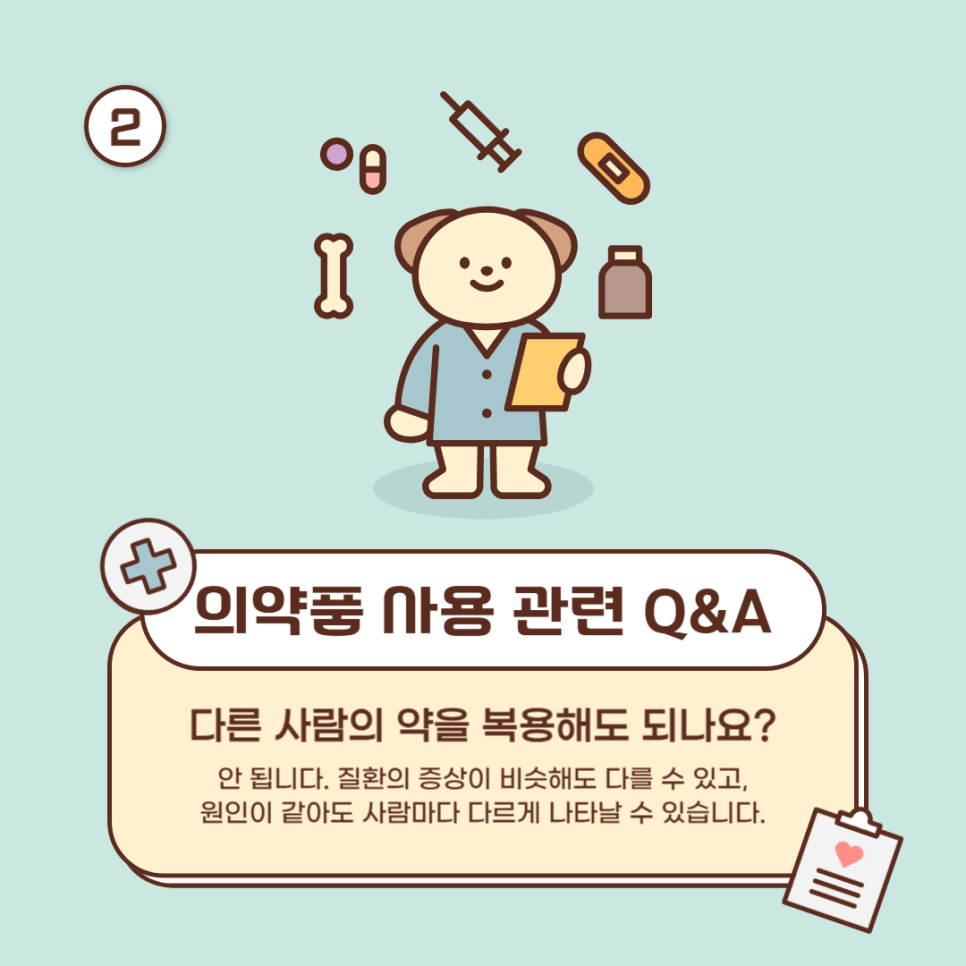 또 다른 사람의 약을 함부로 복용하는 것도 절대 금물이에요. 🙅