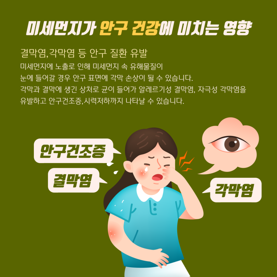 미세먼지는 눈 건강에도 나쁜 영향을 줘요.