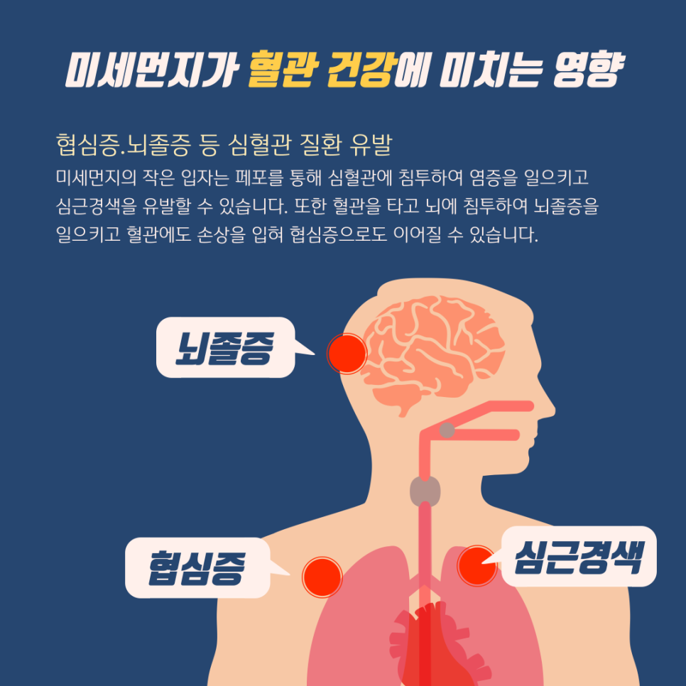 미세먼지는 심혈관 건강에도 큰 영향을 줘요.