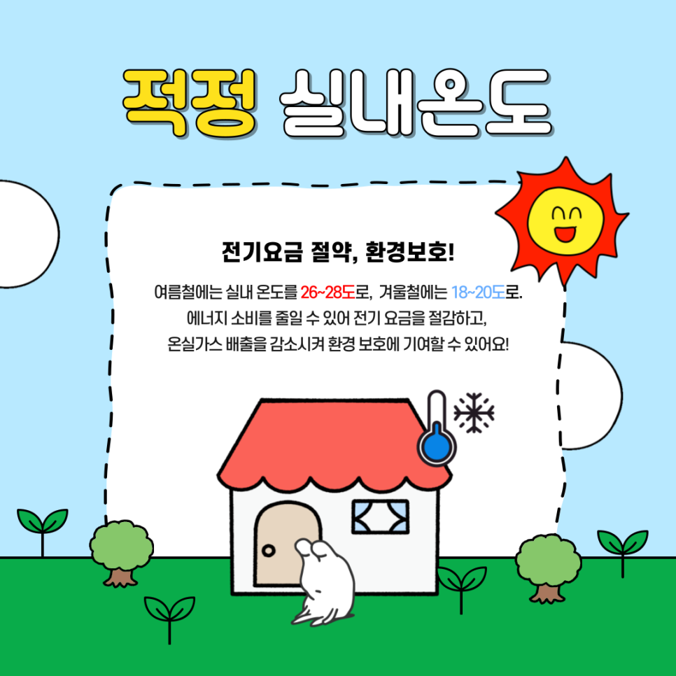 여름엔 실내 온도를 26-28도, 겨울엔 18-20도로 유지해보세요.