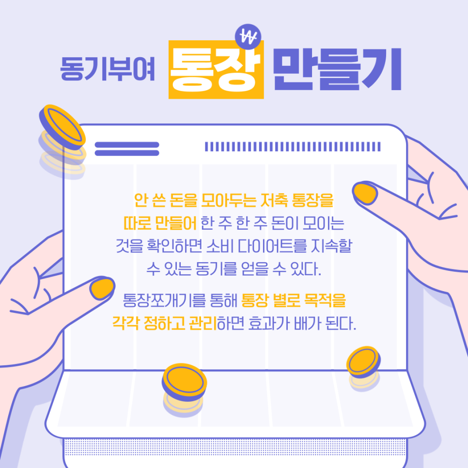 목적별로 저축 통장을 따로 만들어 보세요.