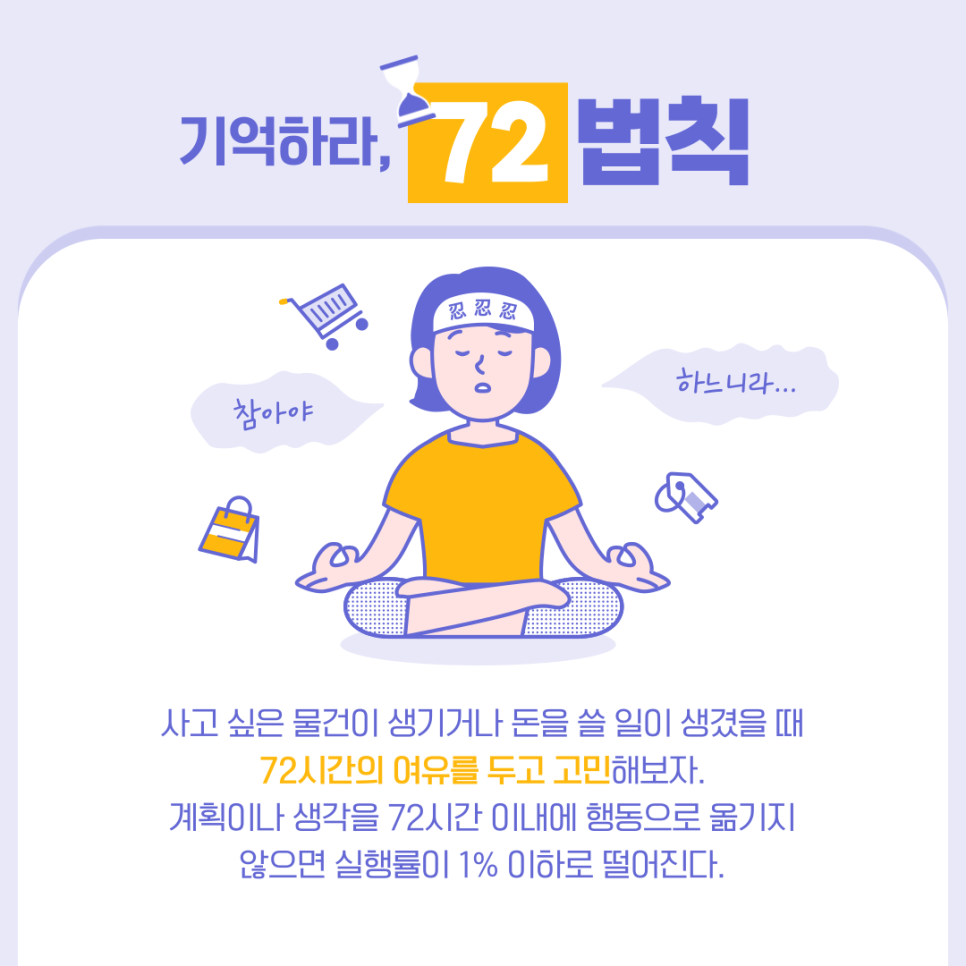 충동구매를 피하려면 '72시간 법칙'을 실천해 보세요.