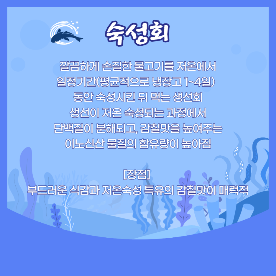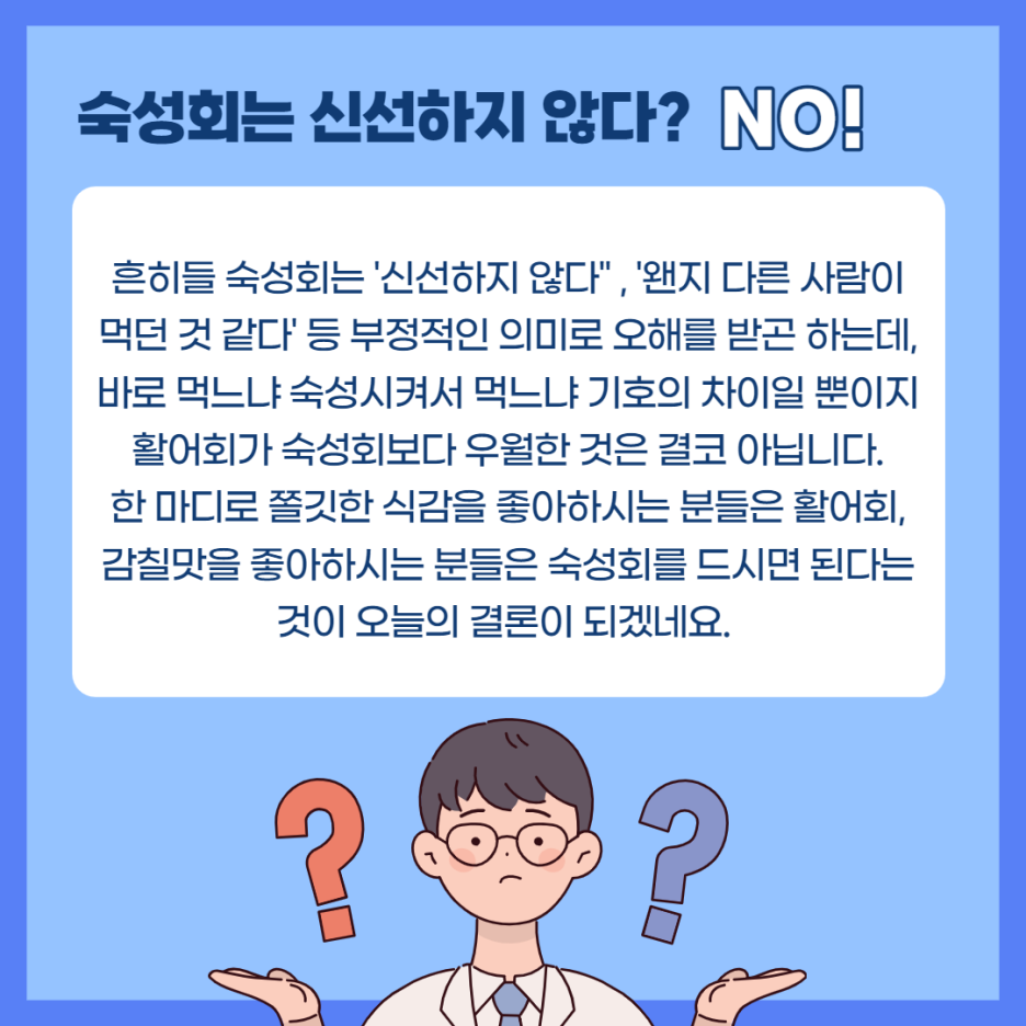 = 활어회와 숙성회 간에 우열은 없습니다.