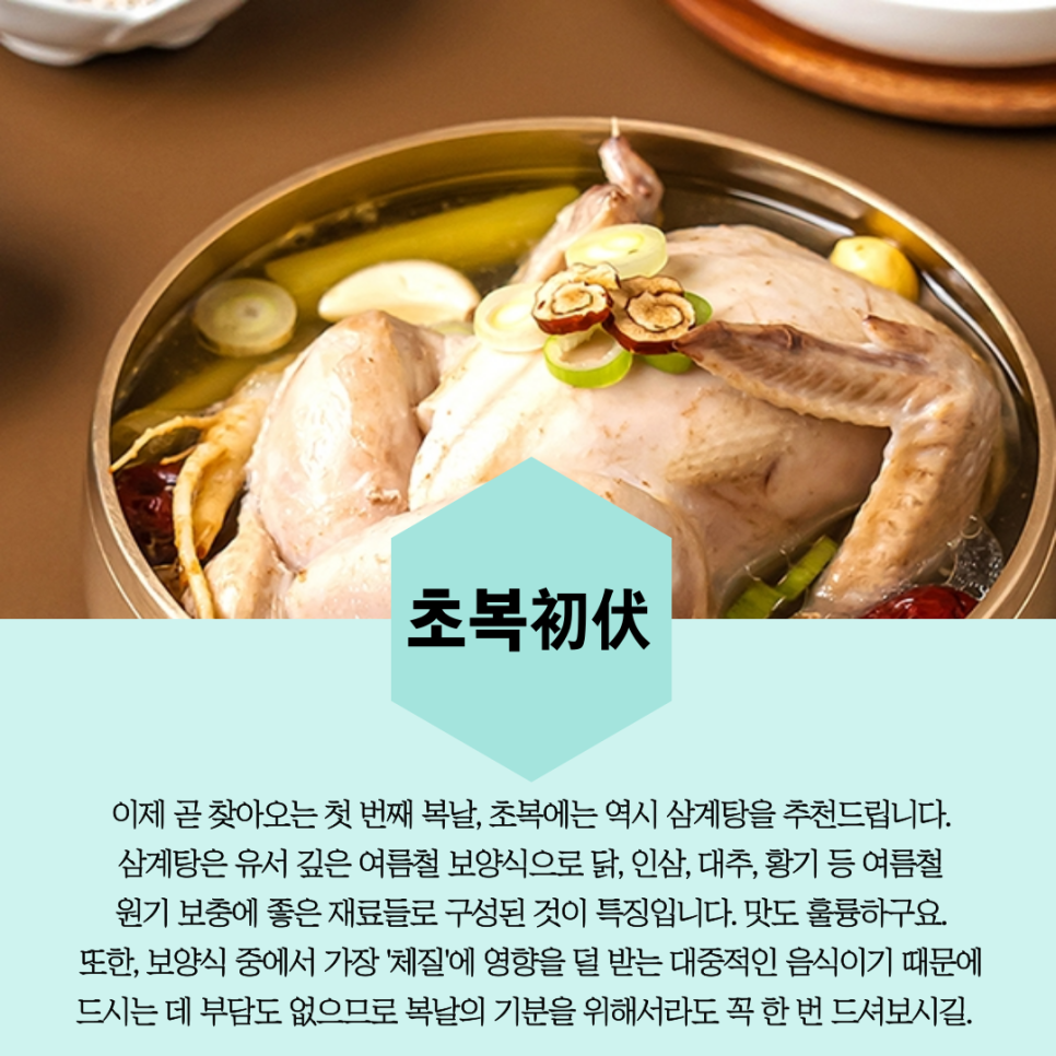 당장 다음주로 다가온 초복(7월 16일 토요일)에는